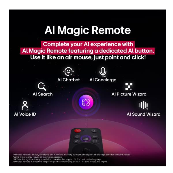 Il rivoluzionario Telecomando Puntatore AI porta l’interazione con il tuo dispositivo a un livello superiore grazie alla presenza del nuovo tasto AI, che semplifica e accelera l’accesso alle funzioni più avanzate. Oltre ai comandi vocali, che permettono un controllo ancora più intuitivo, il telecomando offre anche la funzionalità drag & drop, che consente di navigare e spostare contenuti più facilmente.