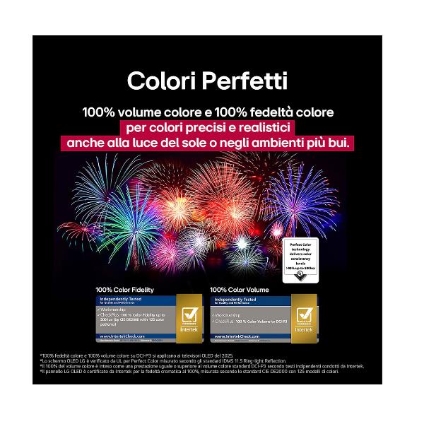Questo TV è stato certificato da Intertek perché assicura una fedeltà cromatica al 100%, riproducendo colori realistici e autentici in ogni scenam, mantenendo intatti i dettagli originali. Inoltre, il volume colore al 100% consente di ottenere sfumature più ricche e intense, che donano profondità e vivacità, arricchendo ulteriormente l’esperienza visiva.