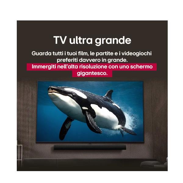Con uno schermo così grande, potrai sentire un coinvolgimento ancora maggiore nei tuoi contenuti. Che si tratti di film, sport o giochi, il tuo intrattenimento non sarà mai più lo stesso. Immergiti in un mondo di colori vividi, immagini cristalline e dimensioni che ti fanno sentire parte della scena.