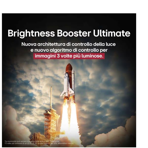 Il Brightness Booster Ultimate aumenta la luminosità dello schermo fino al 70% in più rispetto a uno schermo LG OLED tradizionale. Queste prestazione incredibili sono rese possibili dalla tecnologia innovativa di LG, che ottimizza la gestione della luce per garantire immagini più brillanti, vivaci e nitide, anche in ambienti luminosi. Grazie a questa tecnologia avanzata, ogni dettaglio prende vita, offrendo un’esperienza visiva senza compromessi.