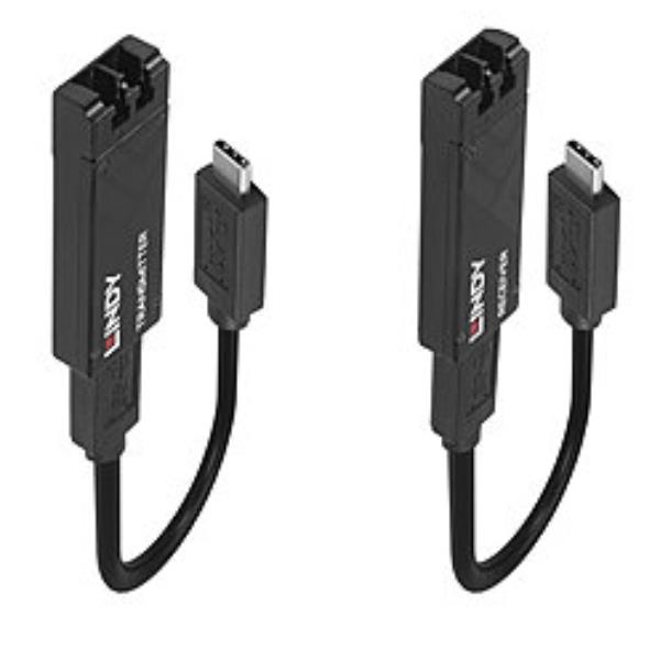Gli extender USB in fibra ottica consentono di estendere i segnali USB ben oltre i limiti delle tradizionali soluzioni con cavo di rame. Questo Extender USB 3.2 su fibra ottica di Lindy supporta velocità di trasferimento dati SuperSpeed fino a 10Gbps. E’ una soluzione hardware completa e compatta composta da due unità, un trasmettitore, che si collega direttamente alla sorgente, ed un ricevitore, che si collega alla periferica USB, le due unità si connettono tramite un cavo in fibra ottica duplex LC multimodale.