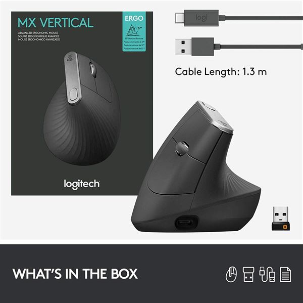 Mouse Verticale Logitech MX Vertical Bluetooth Wireless Ergonomico Nero