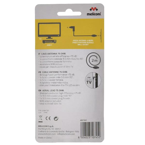 Cavo Antenna Meliconi 90° Coassiale 9.5mm 2 metri