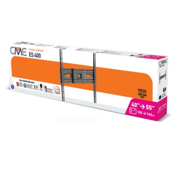 Compatibile con la maggior parte dei televisori grazie alla foratura VESA standard 200×200, 300×300 e 400×400 mm, l’ES400 è un supporto fisso. Questo significa massima stabilità e un’installazione definitiva, pensata per chi non ha intenzione di spostare lo schermo.