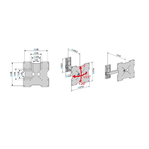 Flatstyle FR200 è un supporto adatto a tutte le TV con foratura VESA 50-75-100-200 mm, da 26 a 45 pollici, con una portata massima di 30 kg e distanza da muro di minimo 5cm e massimo 26 cm.
