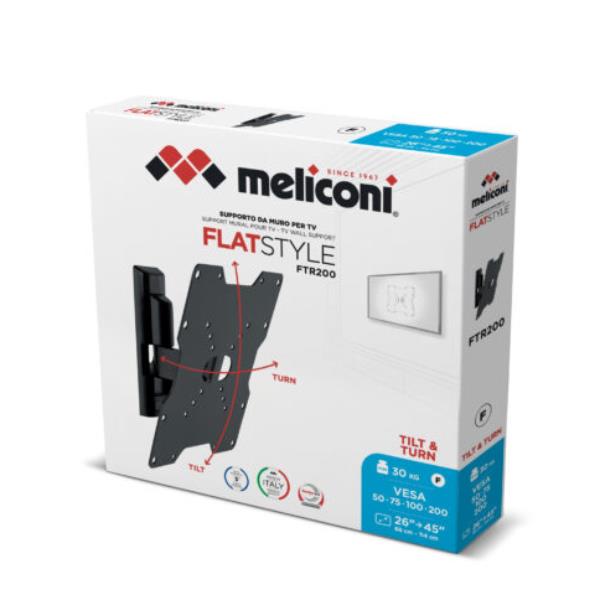 Flatstyle Meliconi unisce tecnologie avanzate a un prezzo sorprendentemente accessibile. Tutti i supporti TV sono progettati e realizzati in Italia, garantendo una qualità costruttiva superiore, un’installazione semplice e una durata nel tempo protetta da una garanzia di 5 anni.