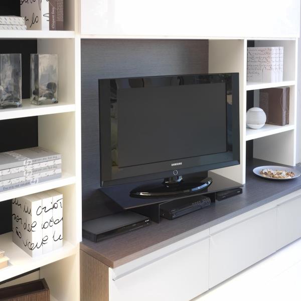 Al di sopra, un elegante piano in vetro temperato ospita il tuo televisore. La vera magia sta nella sua capacità di ruotare di 360°, permettendoti di orientare lo schermo verso il divano, la zona pranzo o qualsiasi altro angolo della stanza con un semplice tocco. Non dovrai più accontentarti di una posizione fissa.