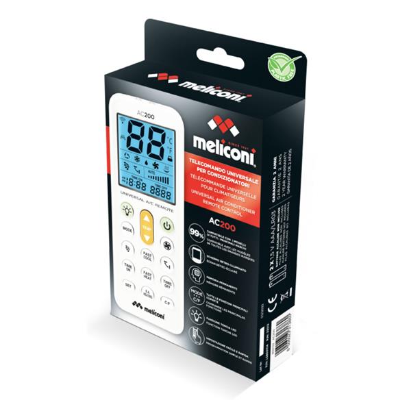 Telecomando universale per condizionatori ad uso domestico. Funziona con il 99% delle marche in circolazione grazie a un database di codici oggi ancora più completo (non compatibile con modelli canalizzati, portatili o a incasso). Tutte le funzioni principali coperte.