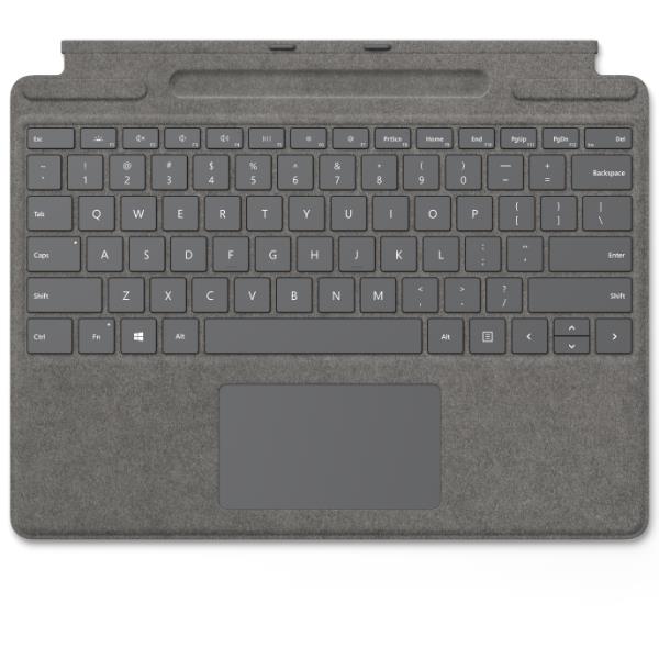 Surface Pro Signature Type Cover è uno splendido complemento del tuo dispositivo Surface Pro. Riprogettata per incorporare il meglio della tecnologia Microsoft, come la retroilluminazione LED, una spaziatura ottimale dei tasti e un ampio trackpad in vetro.