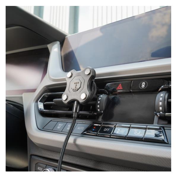 Questo supporto offre una ricarica rapida continua (fino a 65 W) tramite USB-C 2.0 e un trasferimento dati fino a 480 MB/s, mantenendo un design compatto ed elegante. Un alleato indispensabile per i professionisti della strada, gli addetti alla logistica e gli utenti mobili che cercano praticità e prestazioni. Per garantire la ricarica, questo supporto deve essere abbinato a un cavo USB-C a USB-C (non incluso), come il nostro cavo da 1 metro (rif. 001389) o da 2 metri (rif. 001388). Inoltre, consigliamo di collegarlo a un adattatore per caricabatteria da auto compatibile per sfruttare appieno la ricarica rapida è l’alimentazione stabile durante i viaggi.