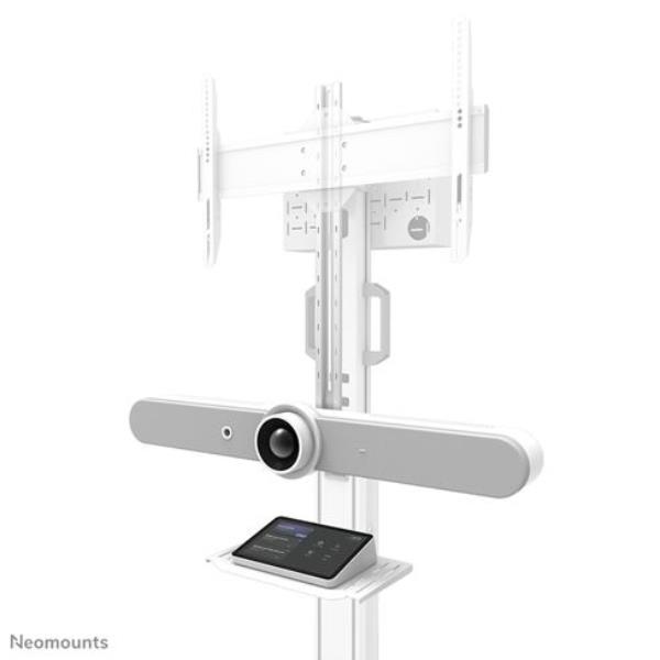 Neomounts AFLS-825WH1 è un kit videobar e multimediale opzionale per la piantana mobile FL50S-825WH1. Il kit consente di installare sul carrello un ripiano separato per cam e dispositivi multimediali. Il ripiano universale per cam può essere installato sia sopra che sotto lo schermo ed è regolabile in altezza, per adattarsi allo schermo. Inoltre, il ripiano per cam può essere montato sia sul fronte che sul retro del supporto. Il kit include un adattatore per la barra Rally e la barra Rally Mini di Logitech (entrambe posizionabili sopra e sotto lo schermo). Inoltre, il ripiano multimediale universale è adatto per l’installazione, ad esempio, del Logitech Tap.