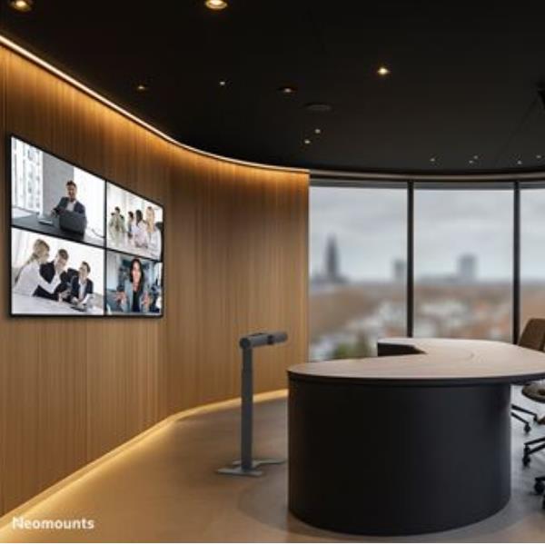Neomounts AV80-500BL è un supporto universale da pavimento per videobar progettato per sostenere dispositivi fino a 10 kg e può essere posizionato liberamente in qualsiasi spazio. Con un’altezza regolabile, ideale per sale riunioni e Microsoft Signature Teams Rooms con layout Front Row, garantisce una visibilità ottimale e una presentazione professionale.