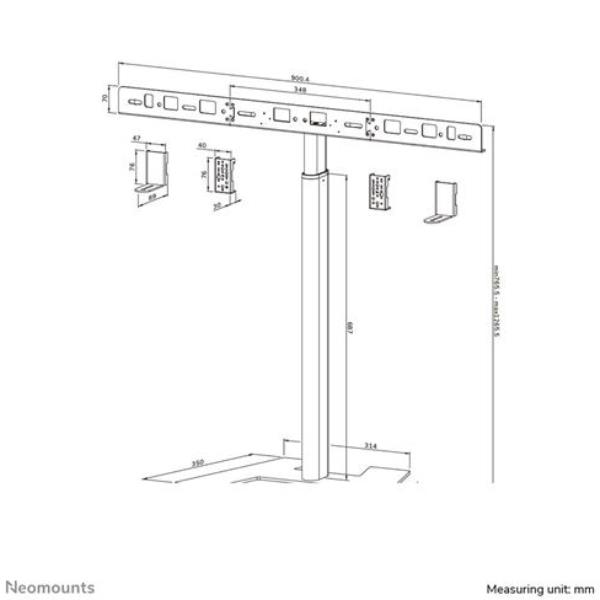 * Il supporto da pavimento Neomounts AV80-500BL è veramente universale e supporta qualsiasi videobar che rientri nella gamma della staffa (vedere il disegno al tratto).