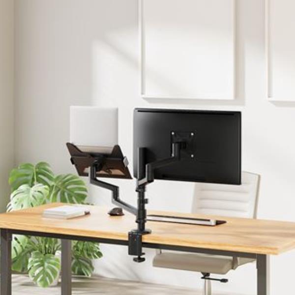 Il Neomounts DS20-425BL2 NEXT Lite è un supporto da scrivania full motion per schermi fino a 27" e laptop fino a 17,3" con una capacità massima rispettivamente di 8 e 5 kg. Grazie alla versatile tecnologia di inclinazione (120°), rotazione (360°) e rotazione (180°), il supporto da scrivania può essere regolato all’altezza e all’angolo di visione ottimali per lo schermo e il laptop. Inoltre, il supporto è dotato di regolazione manuale dell’altezza e della profondità per creare la posizione di lavoro perfetta.