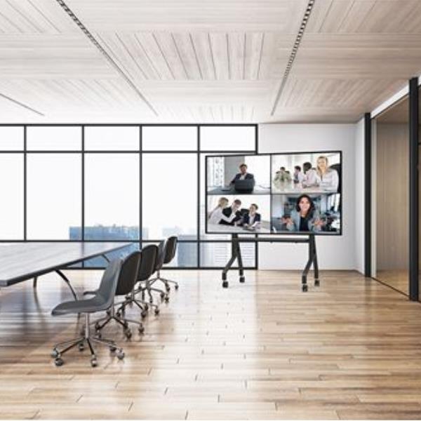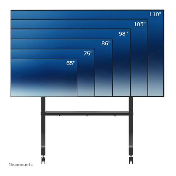 Neomounts MOVE Go XL: il carrello mobile professionale quando hai bisogno di stabilità e flessibilità per schermi di grandi dimensioni, fino a 110 pollici e 125 kg di peso.