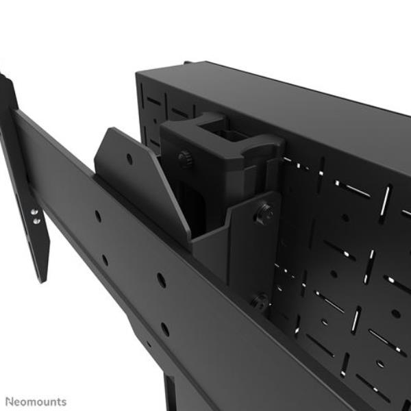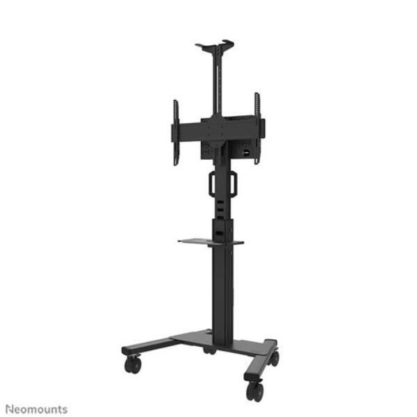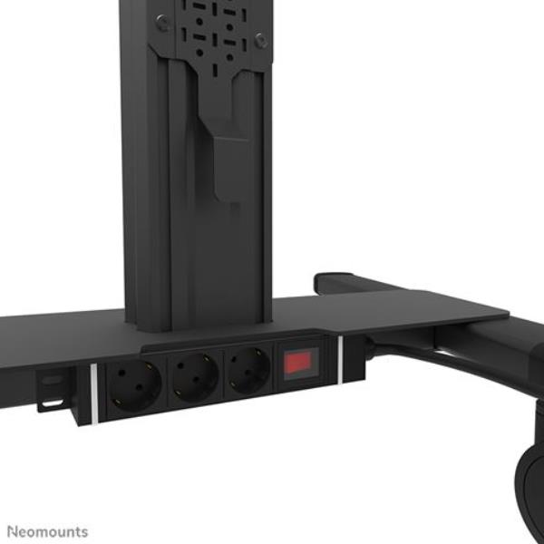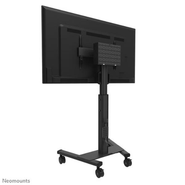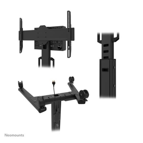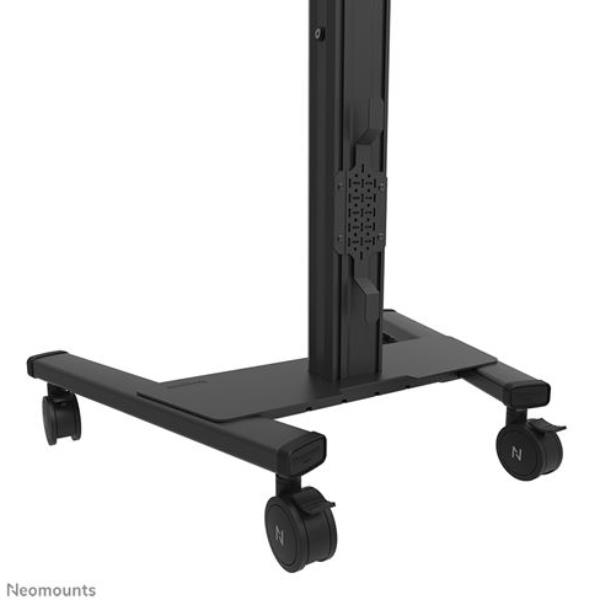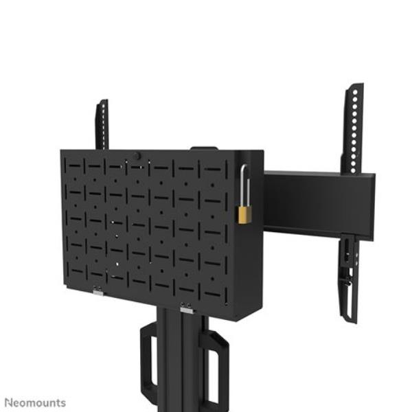 Neomounts Select FL50S-825BL1 è una piantana mobile per schermi piatti fino a 75" con una capacità di peso massima di 70 kg. La piantana è regolabile manualmente in altezza (114,5-153,5 cm), così come la testa della staffa. È incluso un vano chiudibile con serratura e ventilato, opzionale per l’installazione (sia in verticale che in orizzontale).