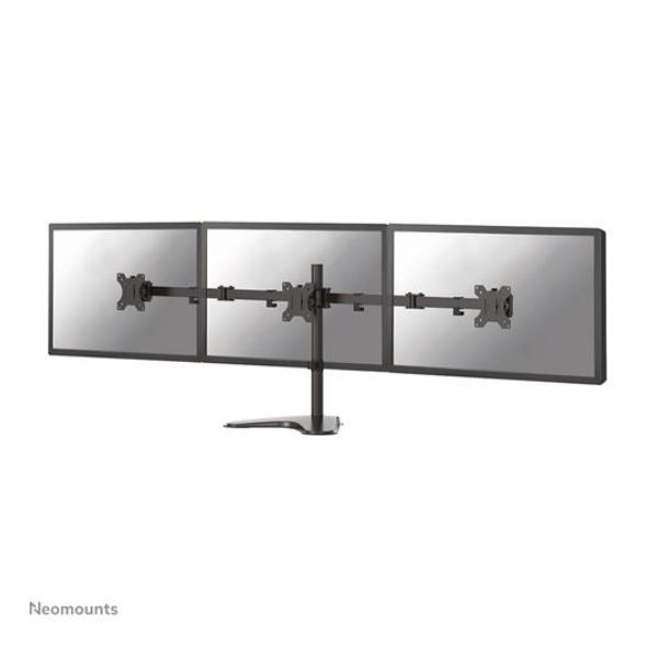 Il Neomounts FPMA-D550DD3BLACK è la soluzione definitiva per organizzare in modo intelligente e professionale fino a tre monitor da scrivania, ciascuno fino a 27 pollici.