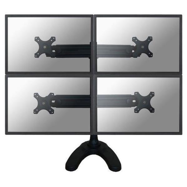 Questo braccio porta monitor NewStar, modello FPMA-D700DD4 consente di collegare quattro schermi LCD / LED / TFT su di una scrivania con la modalità di fissaggio su piano attraverso vite centrale o stand.