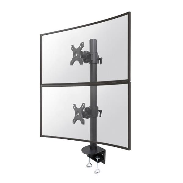 Questo braccio porta monitor Neomounts, modello FPMA-D960DVBLACKPLUS consente di collegare due schermi LCD/LED/TFT su di una scrivania con la modalità di fissaggio su piano attraverso un morsetto.