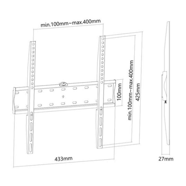 Il suo profilo ultrasottile di soli 2,7 cm permette al tuo schermo di aderire perfettamente alla parete, per un look elegante e moderno. La compatibilità è universale: si adatta a tutti i dispositivi con attacchi VESA standard, dagli schemi 200×200 mm fino a 400×400 mm.