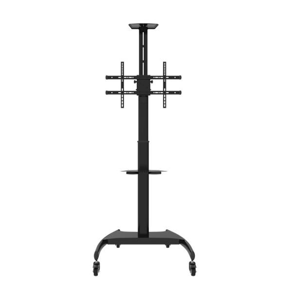 Il supporto a pavimento NewStar, modello PLASMA-M1900E è un mobiletto portatile per schermi LCD/LED/Plasma fino a 70" (178 cm) con altezza regolabile da 130 a 162 cm.