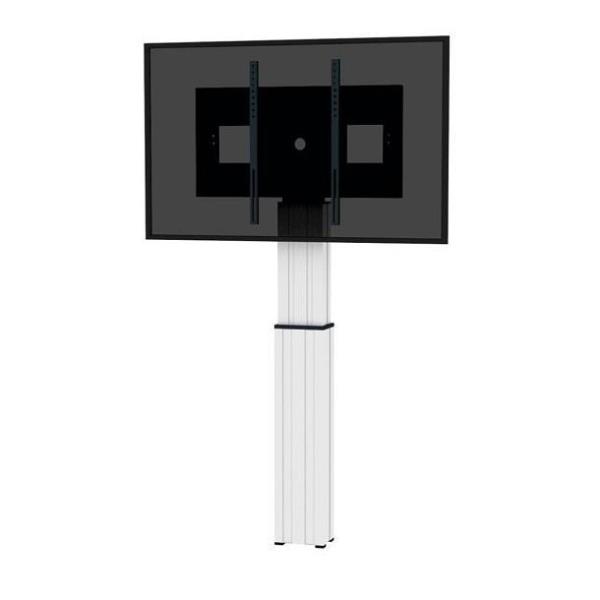 Il carrello mobile a pavimento elettrico è regolabile in altezza automaticamente a un’altezza di 50 cm con telecomando. Dal piano al centro la distanza dello schermo è variabile da 118 a 169 cm. La posizione può essere perfettamente livellata con quattro piedi regolabili sotto la colonna centrale.