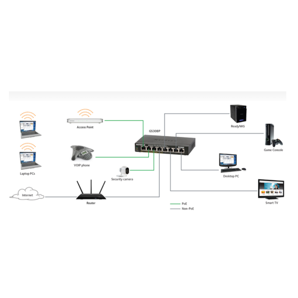 Gli Switch Unmanaged Ethernet SOHO di NETGEAR assicurano una connessione di rete immediata e conveniente per gli ambienti domestici e gli uffici di piccole dimensioni. Sono facili da utilizzare, affidabili e robusti grazie ai case in metallo. Il supporto Power-over-Ethernet (PoE) consente anche di fornire sia l’alimentazione sia i dati su un singolo cavo ethernet CAT-5 a dispositivi come videocamere di sicurezza IP, telefoni VoIP, access point wireless ecc. Grazie a questi switch Plug-and-Play, sarà possibile espandere in modo rapido e semplice le connessioni di rete a più dispositivi, senza ulteriori configurazioni. Disponibili con 5 porte fino a 48 porte, questi switch supportano anche tecnologie per il risparmio energetico per un risparmio di energia e denaro.