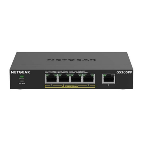Netgear GS305PP Gigabit Ethernet (10/100/1000) Nero Supporto Power over Ethernet (PoE):