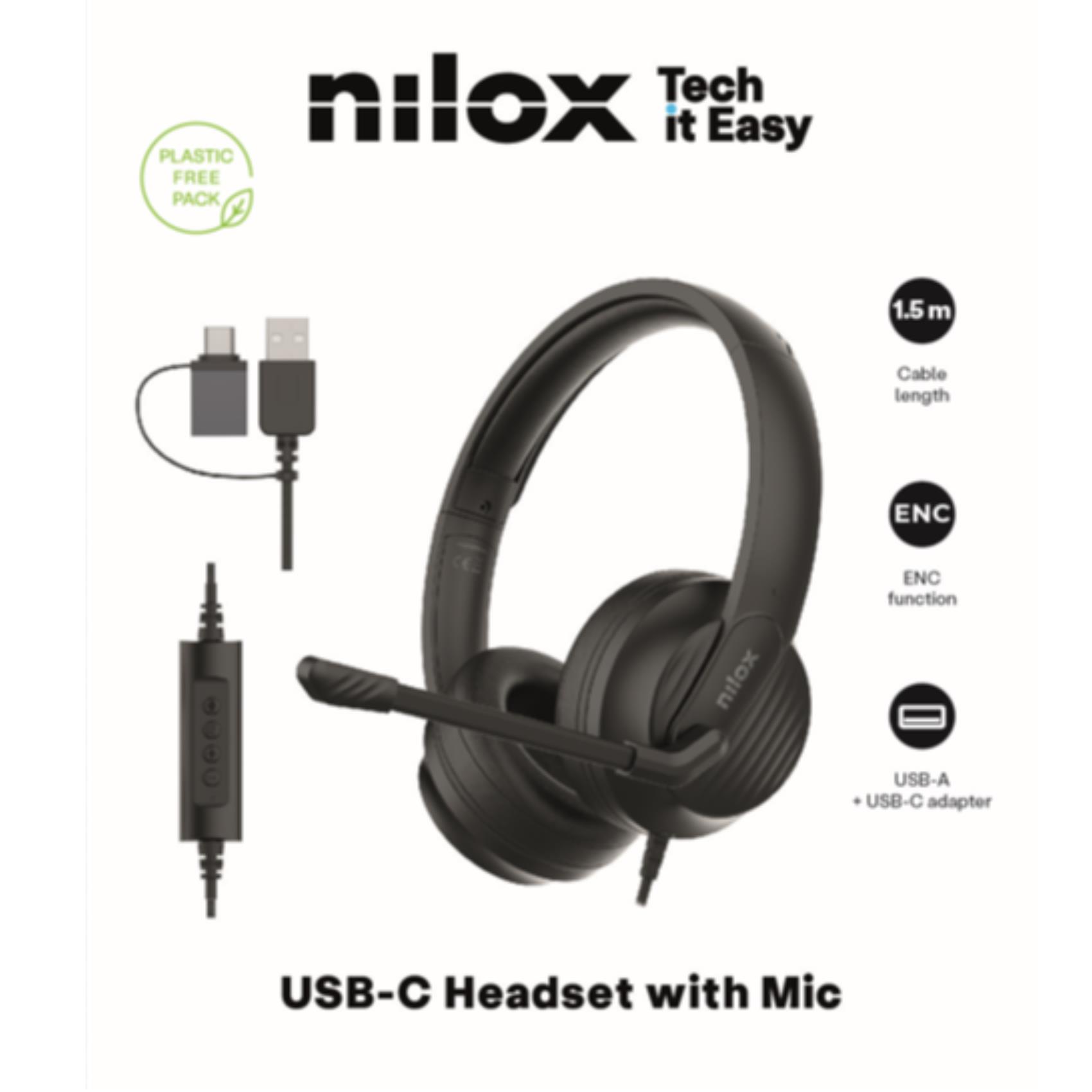 La cuffia USB professionale di Nilox Tech USB con ENC leggera per un comfort prolungato e una trasmissione di voce chiara, ideale per ambienti professionali.