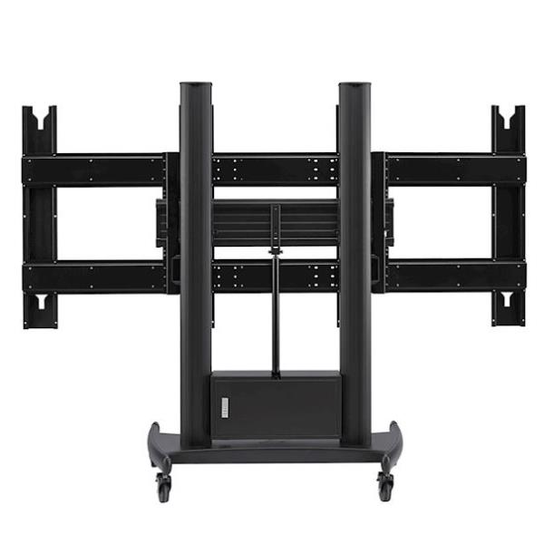 Per una maggiore flessibilità, l’ altezza del display può essere regolata di 490 mm. grazie al meccanismo di sollevamento motorizzato. il supporto e’ provvisto di solide ruote e ciò consente al Quad di spostarsi tra un ambiente e l’altro senza fatica.