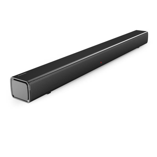 HTB100 è una soundbar compatta ed elegante progettata per adattarsi perfettamente al TV. All’interno del suo corpo nero lucido , rifinito con una griglia anteriore in metallo , sono presenti due altoparlanti e una porta bass reflex per una potenza audio totale di 45 W e bassi straordinari.