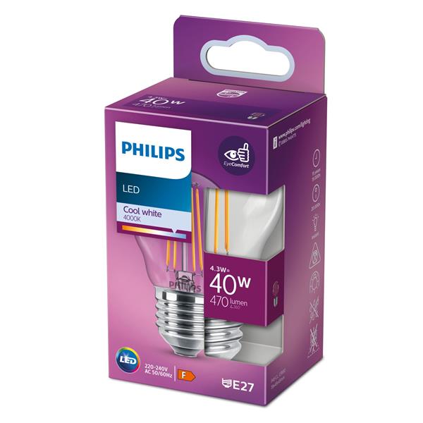 Lampadina LED Philips E27 4.3W 470 Lumen Luce Fredda
