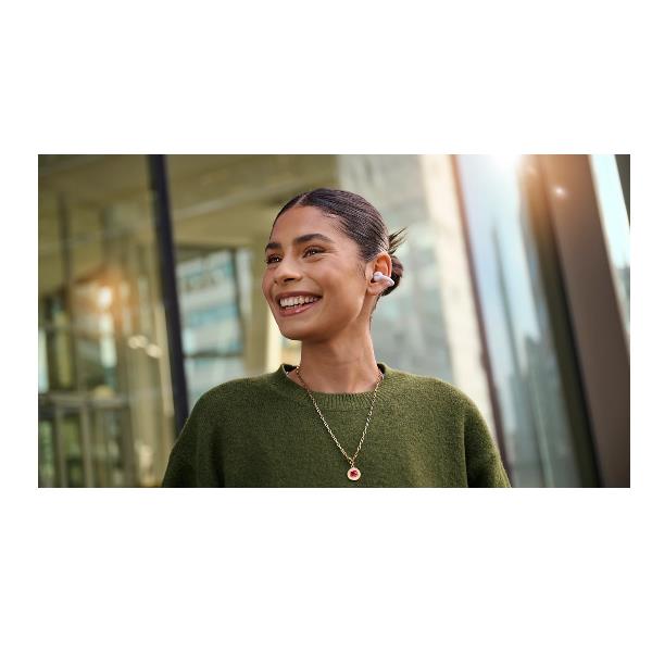 Audio nitido e comfort ideale con gli auricolari True Wireless open-ear, indossabili proprio come un ear-cuff. Ogni auricolare si aggancia in modo delicato ma sicuro, mentre il design open-ear ti consente di sentire l’ambiente circostante anche mentre riproduci la tua musica.