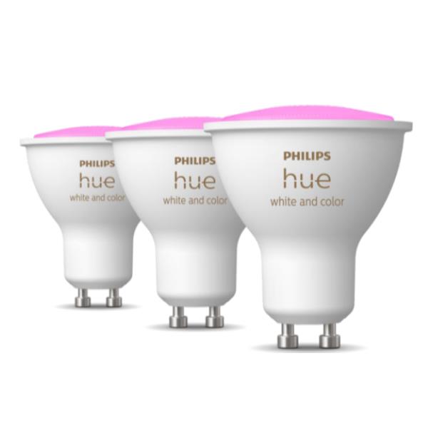Illuminazione intelligente plug & play. Trasforma qualsiasi stanza in un istante con questo set di tre lampadine GU10. Compatibili con la maggior parte dei faretti standard, offrono un controllo totale sulla luce: milioni di sfumature di bianco, dal caldo accogliente al freddo energico, e tutta la vivacità dei colori.