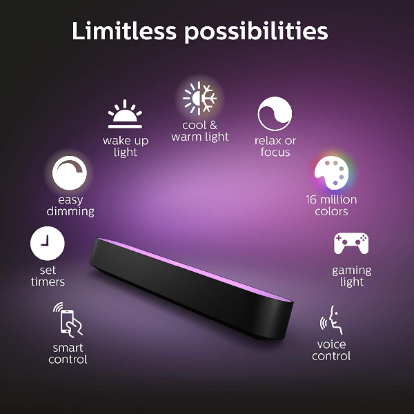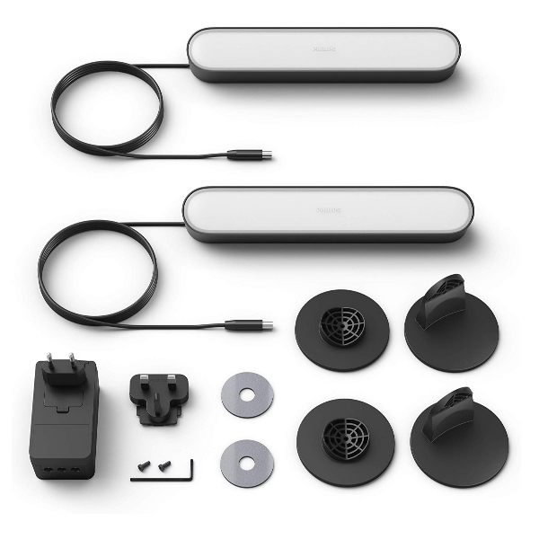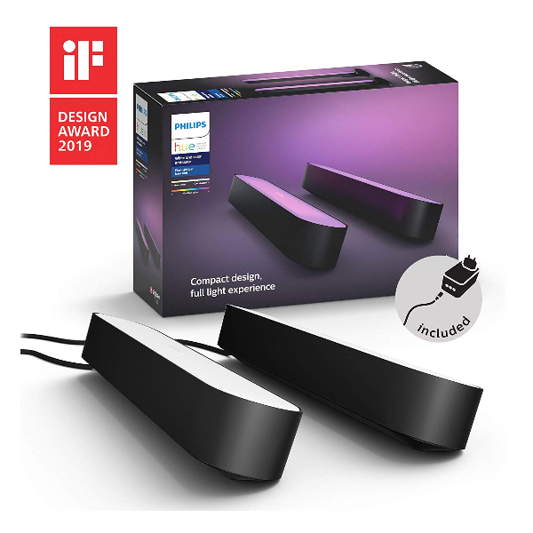 Hue Play Unità Base con alimentatore 2 pezzi NeroControlla le luci con la tua voce*Controlla le tue luci solo con la tua voce, senza usare le mani! I comandi vocali ti consentono di controllare più luci in una stanza contemporaneamente o solo una lampada. *Funziona con Assistente Google e Amazon Alexa.Crea l’atmosfera giusta con luce bianca tenueLe lampadine e le lampade Hue utilizzano una luce bianca tenue. L’intensità regolabile delle luci, da brillante a bassa per la notte, ti consente di colorare casa tua con la giusta tonalità di luce calda quando ti serve.