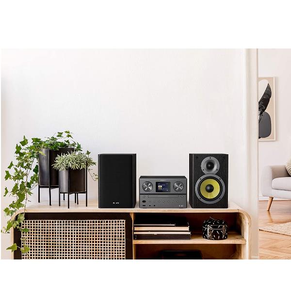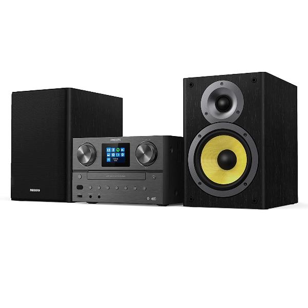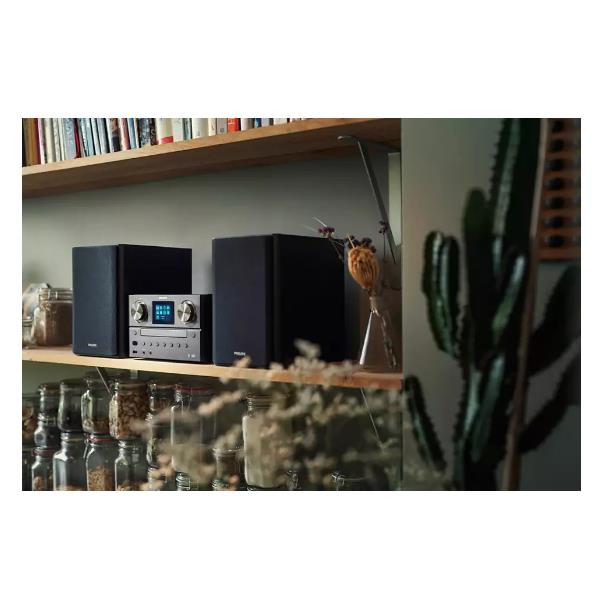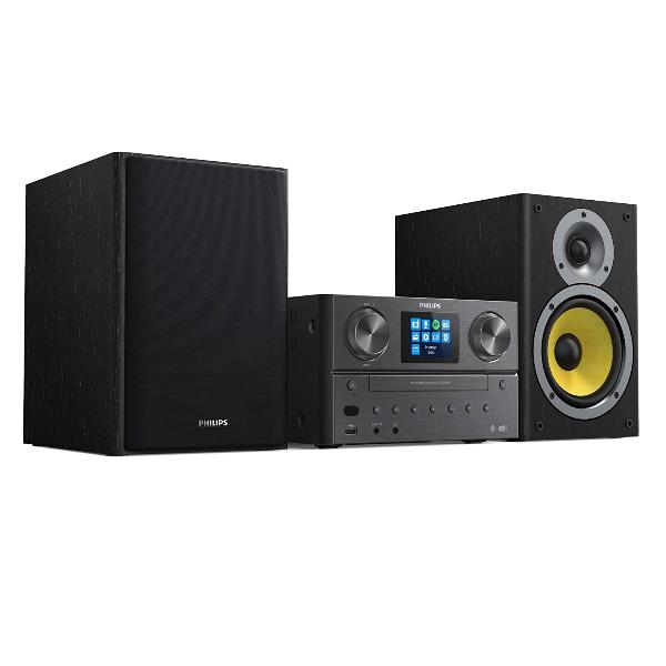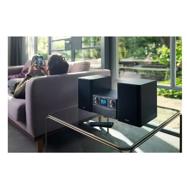 Riempi la stanza con l’audio che ami. Grazie alla radio via Internet, Spotify Connect, Bluetooth e un lettore CD, questo elegante sistema micro è in grado di riprodurre qualsiasi contenuto. Inoltre puoi sintonizzarti sulla radio DAB+ o FM con un audio potente da 100 W.