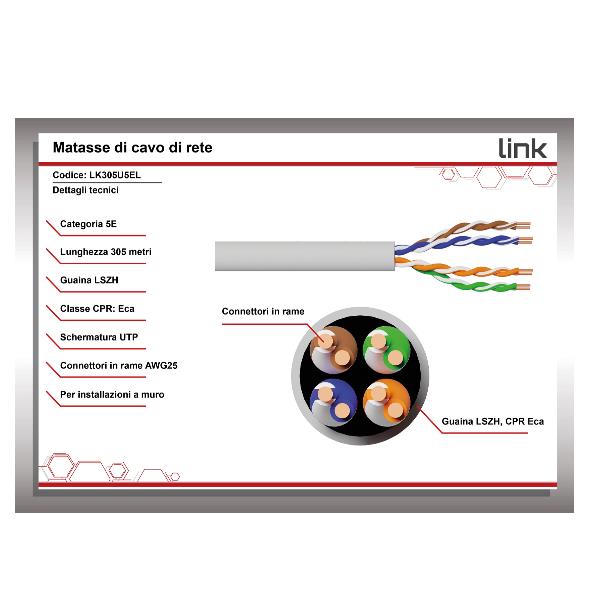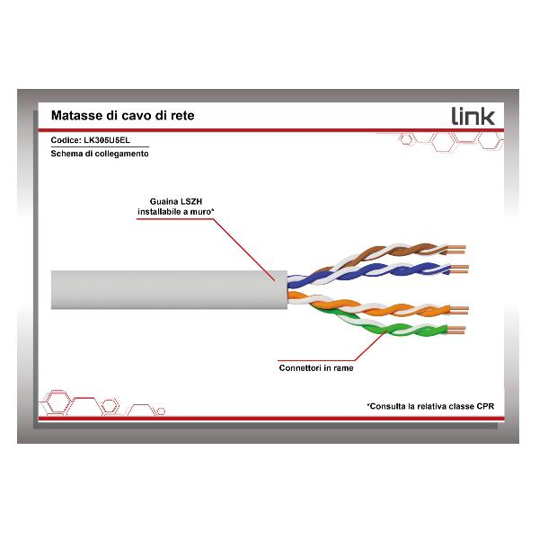 Matassa mt 305 cavo solido non schermato UTP Categoria 5e per reti per installazione in postazioni fisse a muro, in pannelli patch o in moduli jack di rete