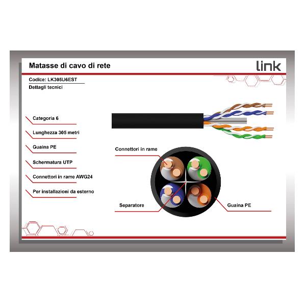 Cavo categoria 6 non schermato U/UTP per installazioni esterne