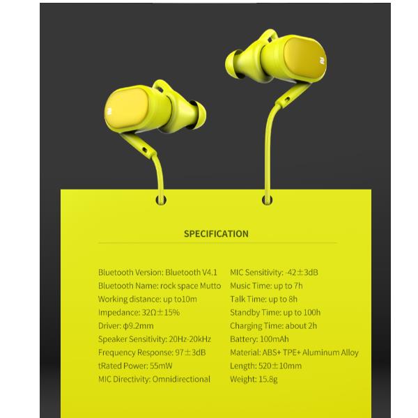 Rock – Cuffiette Bluetooth con Microfono Sportive- Giallo