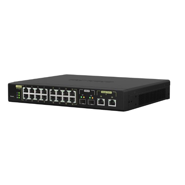 Il QNAP QSW-M2116P-2T2S è uno switch gestito L2 PoE con sedici porte PoE+ 2,5GbE da 30-watt e due porte PoE++ 10GbE da 90-watt. Offrendo una potenza totale di 280 watt e due porte 10GbE SFP+, il QSW-M2116P-2T2S non solo consente di creare una infrastruttura di rete PoE potente e ad alta velocità per i punti di accesso Wi-Fi 6 e router, ma offre anche funzionalità di uplinking di rete backbone. QSS, il sistema switch di QNAP con interfaccia Web facile da usare, aiuta gli amministratori IT a controllare in modo efficiente le reti Layer 2 e PoE, inclusi AP wireless, telecamere IP e Digital Signage, switch e server core. Il QSW-M2116P-2T2S offre alle PMI una soluzione di installazione LAN gestita centralmente ed economica.
