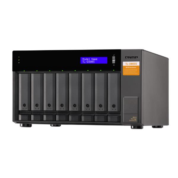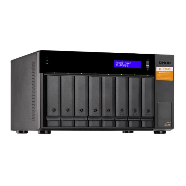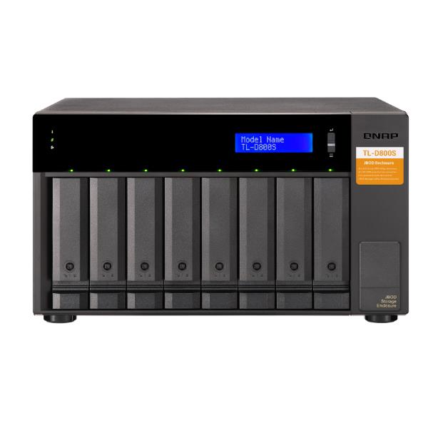 L’ Unità di espansione JBOD TL-D800S consente di eseguire il backup e di espandere il NAS QNAP, computer e server Windows® e Ubuntu®. Il TL-D800S dispone di otto unità baie SATA 6Gb/s da 3,5” oltre a una scheda QXP PCIe per il collegamento dell’alloggiamento utilizzando un cavo SFF-8088 (o SFF-8644). Offre prestazioni di lettura/scrittura affidabili per attività di archiviazione e backup più semplici.