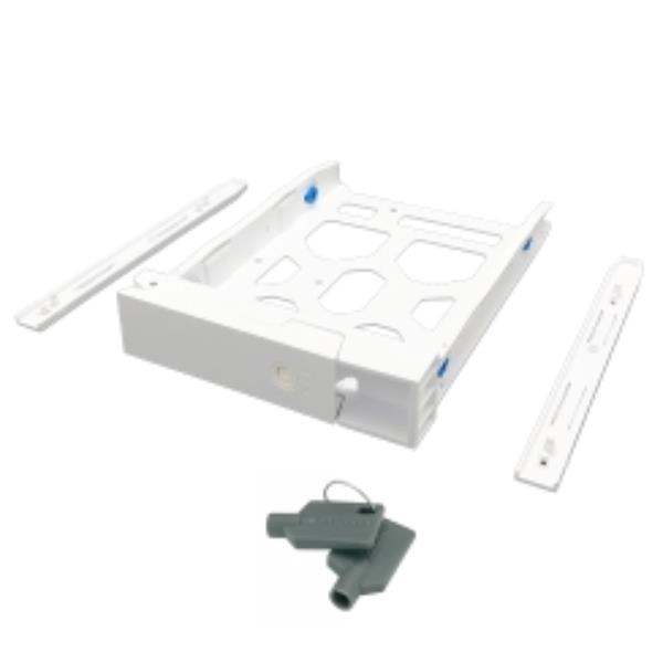 Vassoio HDD da 3,5" con serratura a chiave e due chiavi, bianco e plastica, confezioni di viti da 2,5" e 3,5" incluse.
