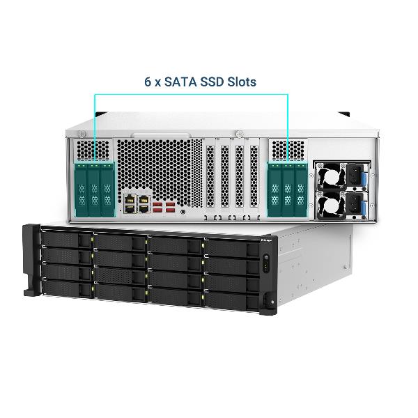 NAS rack Qnap ad alte prestazioni, ideale per ambienti aziendali che richiedono storage espandibile e affidabile. Con 22 bay, connettività 10GbE e 64GB di RAM, garantisce velocità di trasferimento elevate e gestisce carichi di lavoro intensi come virtualizzazione e backup centralizzato. La soluzione perfetta per consolidare e proteggere i dati della tua impresa.