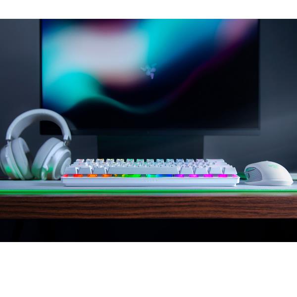 Diventa ancora più letale con la Razer Huntsman Mini, una tastiera da gaming con un fattore di forma del 60% e dotata dei rivoluzionari switch ottici Razer. Incredibilmente portatile e perfetta per i setup più essenziali, scopri le sue attuazioni alla velocità della luce nel nostro fattore di forma più compatto.