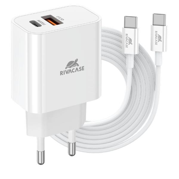 Caricabatterie da Parete Rivacase USB-C 20W PD 2 Porte + Cavo USB-C