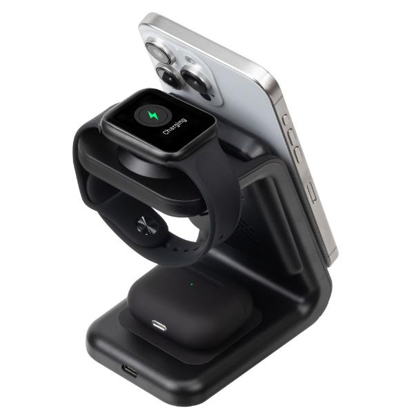 - Ricarica 3-in-1 simultanea: per iPhone (con MagSafe), Apple Watch e AirPods.