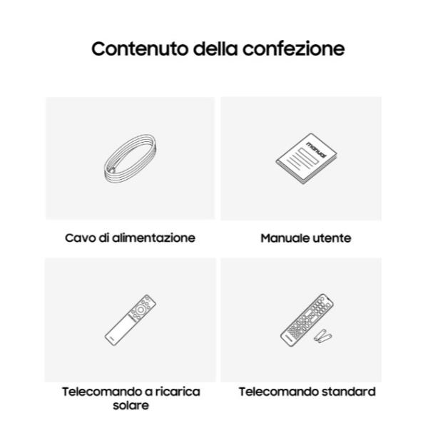 - Dolby Atmos & Q-Symphony: L’audio surround avvolge la stanza da ogni direzione. Se abbini una soundbar Samsung, la tecnologia Q-Symphony fa lavorare insieme tutti gli altoparlanti per un’esperienza sonora sinfonica.