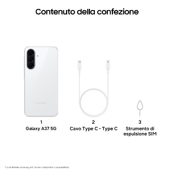 5_Galaxy A37 5G supporterà fino a 6 aggiornamenti del sistema operativo Android e fino a 6 anni di aggiornamenti della sicurezza (Security Maintenance Release), a partire dalla data di immissione sul mercato. La disponibilità e le tempistiche degli aggiornamenti del sistema operativo Android e degli aggiornamenti della sicurezza possono variare in base al modello del dispositivo e al mercato.
