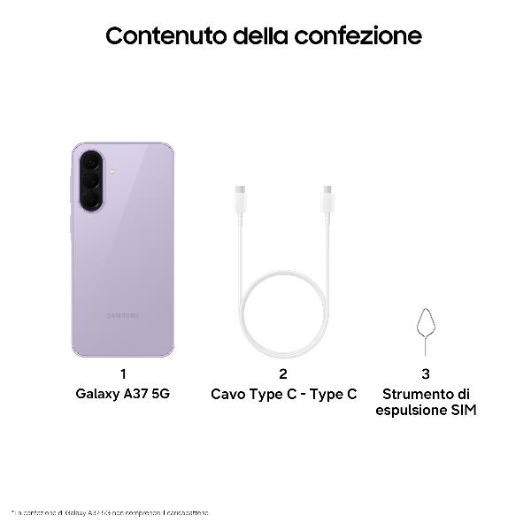 5_Galaxy A37 5G supporterà fino a 6 aggiornamenti del sistema operativo Android e fino a 6 anni di aggiornamenti della sicurezza (Security Maintenance Release), a partire dalla data di immissione sul mercato. La disponibilità e le tempistiche degli aggiornamenti del sistema operativo Android e degli aggiornamenti della sicurezza possono variare in base al modello del dispositivo e al mercato.