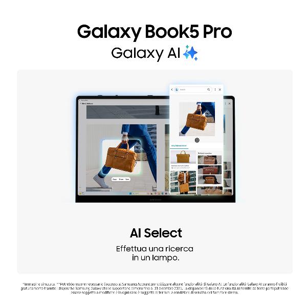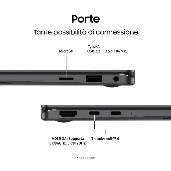 Il nuovo Samsung Galaxy Book5 Pro 16" ha la potenza di cui hai bisogno per realizzare le tue ambizioni, racchiusa in un corpo elegante e leggero con finitura Gray. Portalo con te nel tuo viaggio verso grandi traguardi. Grazie al processore Intel Core Ultra (Serie 2), alla grafica avanzata e alla NPU da 47 TOPS, affronta con facilità grandi carichi di lavoro, rendering 3D e attività AI a una velocità incredibile. Con AI Select, puoi cercare immagini, testi o codici QR sul touchscreen per ottenere risultati immediati. Il display AMOLED touch screen offre colori vividi, mentre la batteria garantisce fino a 25 ore di autonomia video. Con la ricarica rapida, ottieni il 35% di carica in 30 minuti. Il Wi-Fi 7 è 4,8 volte più veloce del Wi-Fi 6, mentre Samsung Knox protegge i tuoi dati con un chip di sicurezza in tempo reale.